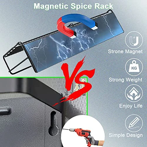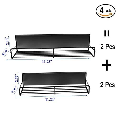 ZLEYECZ 4 Pack Magnetic Spice Rack Organizer, Space Saver For Refrigerator/Stove Oven/Microwave Oven And Washing Machine,Metal Fridge Shelf,Black…